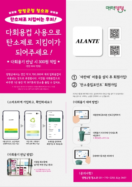 양평군청, 다회용컵 사용 시 1회당 300원 탄소중립포인트 적립 시스템 도입
