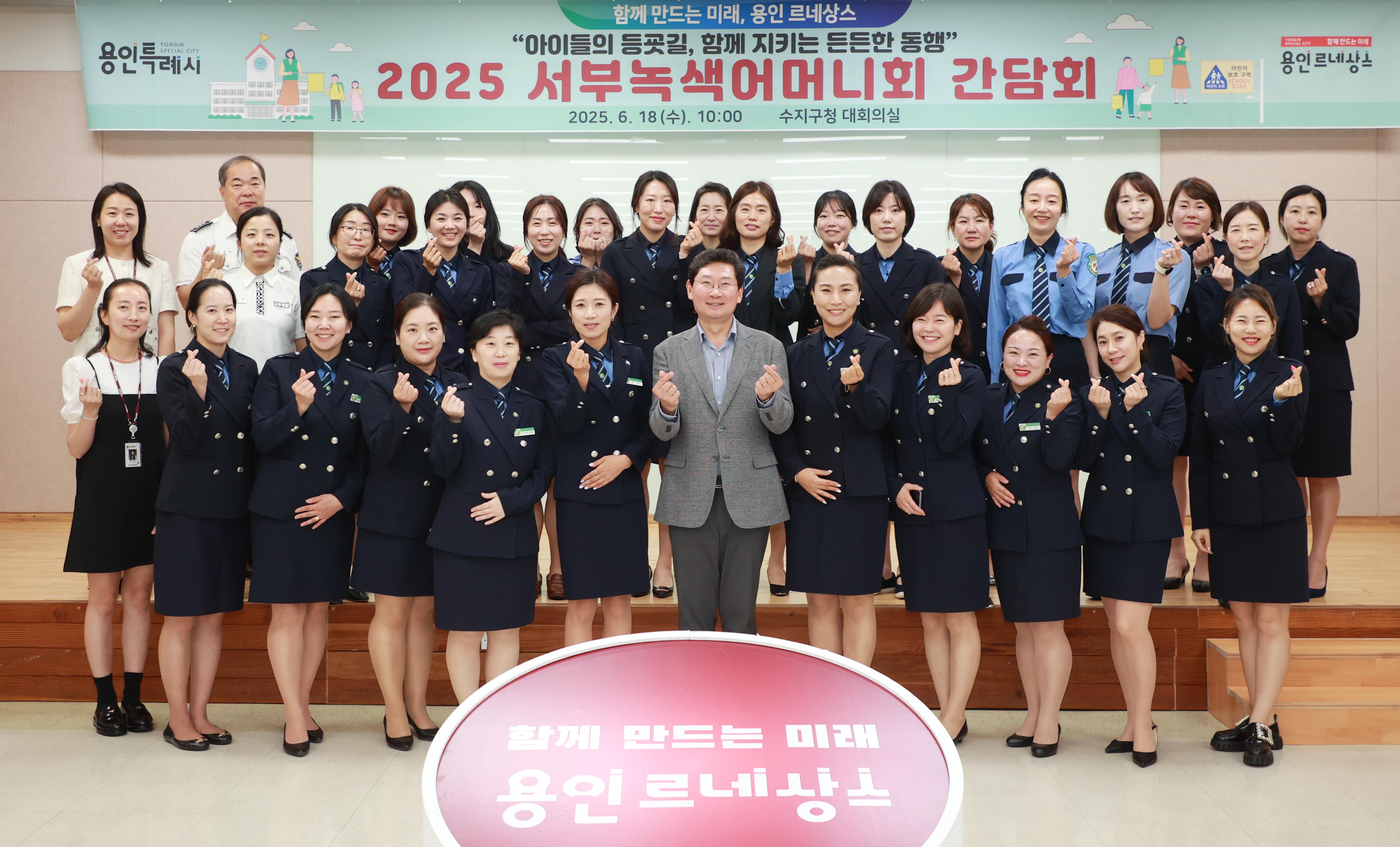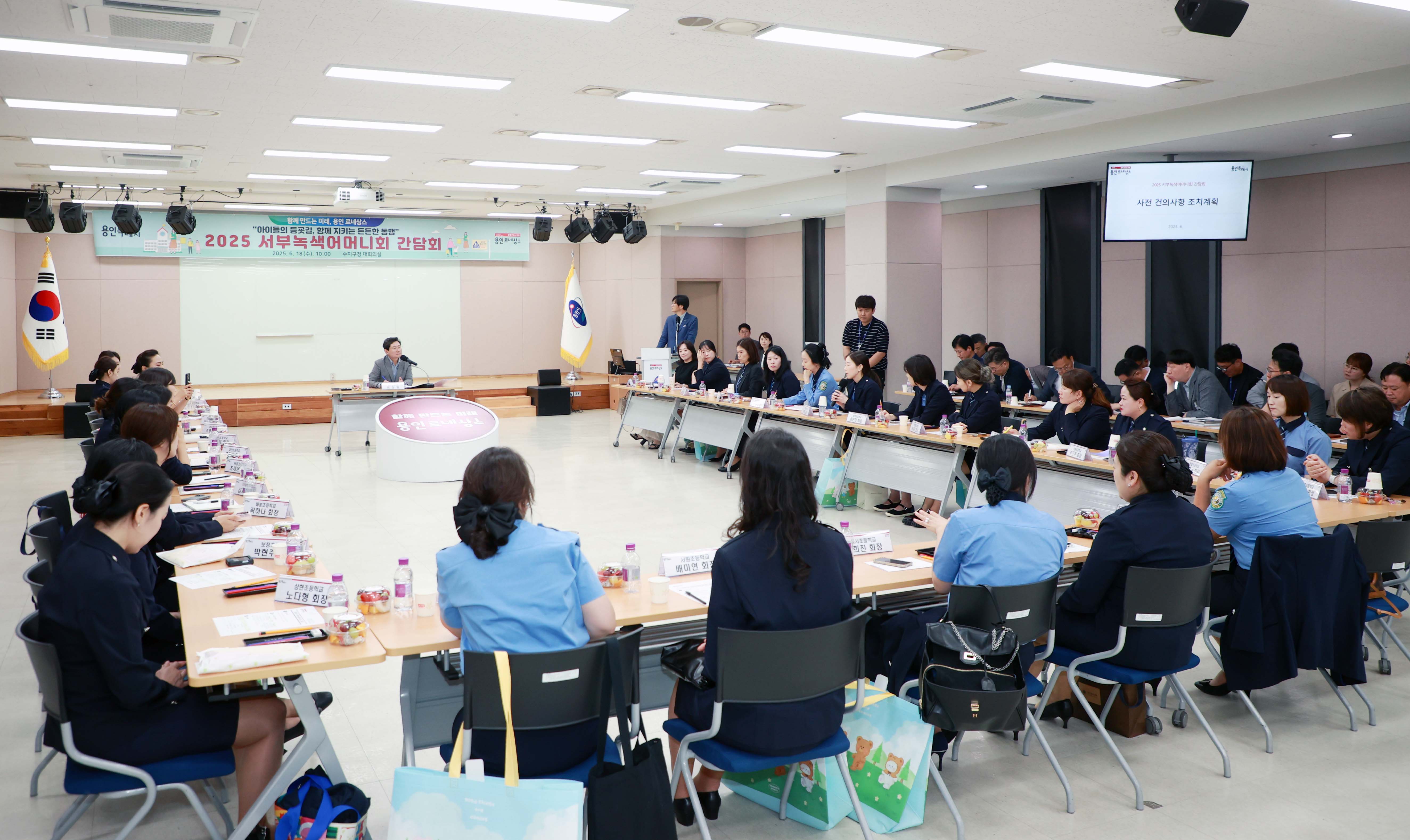 간담회에는 유민영 서부녹색어머니회 연합회장을 비롯해 수지‧기흥구 소재 27개 초등학교 회장 등 50여 명이 참석했으며, 기흥‧수지구 교통·도로 관련 부서장과 서부경찰서와 용인교육지원청 관계자들이 함께했다.