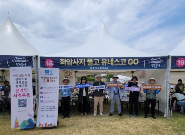 [금요저널] 양주시가 최근 개최한 ‘제8회 양주 회암사지 왕실축제’에서 ‘양주 회암사지 주민협의체’ 위원들이 회암사지 세계유산 등재 추진을 위한 홍보 활동을 진행했다고 밝혔다.