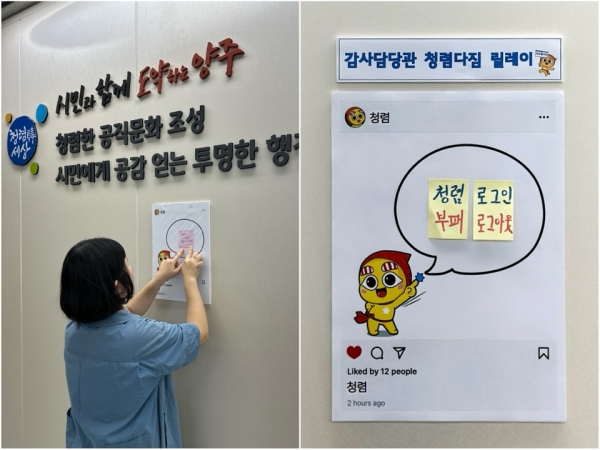 양주시 감사담당관, '청렴 다짐 릴레이' 펼쳐ⵈ 작지만 의미 있는 실천으로 ‘눈길’