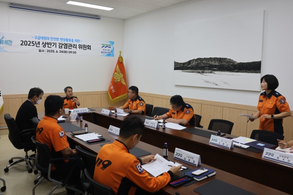 주요 안건으로는 △2025년 상반기 감염관리 추진 실적 보고 △구급대원 감 염 관리 실태 점검 △감염보호장비 착용 및 관리 기준 강화 △현장 출동대원 감염 관련 애로사항 청취 등 현장 중심의 과제들이 심도 있게 다뤄졌다.