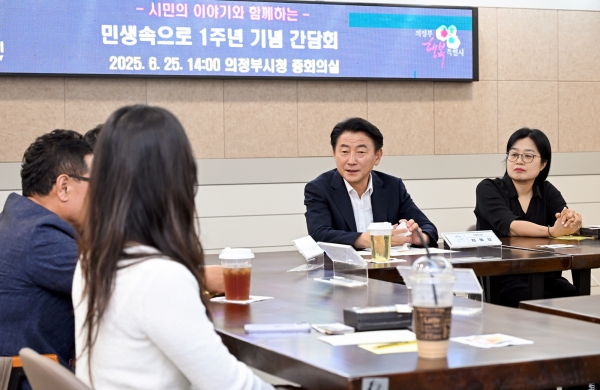 [금요저널] 의정부시는 6월 25일 시청 중회의실에서 ‘민생 속으로’ 1주년을 맞아 간담회를 열고 그동안 현장에서 만난 시민들과 함께 의정부의 일상을 돌아보는 시간을 가졌다.