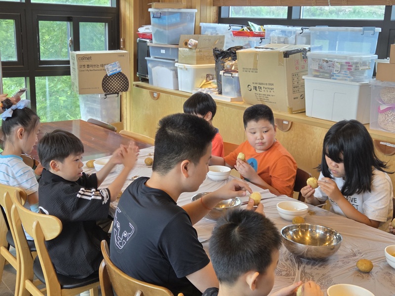□ 평소 교실에서 활동에 관심이 없이 소극적이던 1학년 최○○학생도 감자캐기 활동에 적극적으로 참여하며 조리 과정에서도 스스로 해보고자 하는 모습을 보였다.