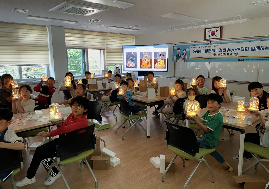 □‘글라스아트 심리안정화 프로그램’은 5. 29.(목) 용성초등학교, 6. 13.(금) 경산서부초등학교, 6. 27.(금) 와촌초등학교에서 실시했다. 이 프로그램은 심리안정화를 목적으로 학생들의 학업 및 대인관계 스트레스를 줄여주고 치유를 돕는 기회가 되었다.