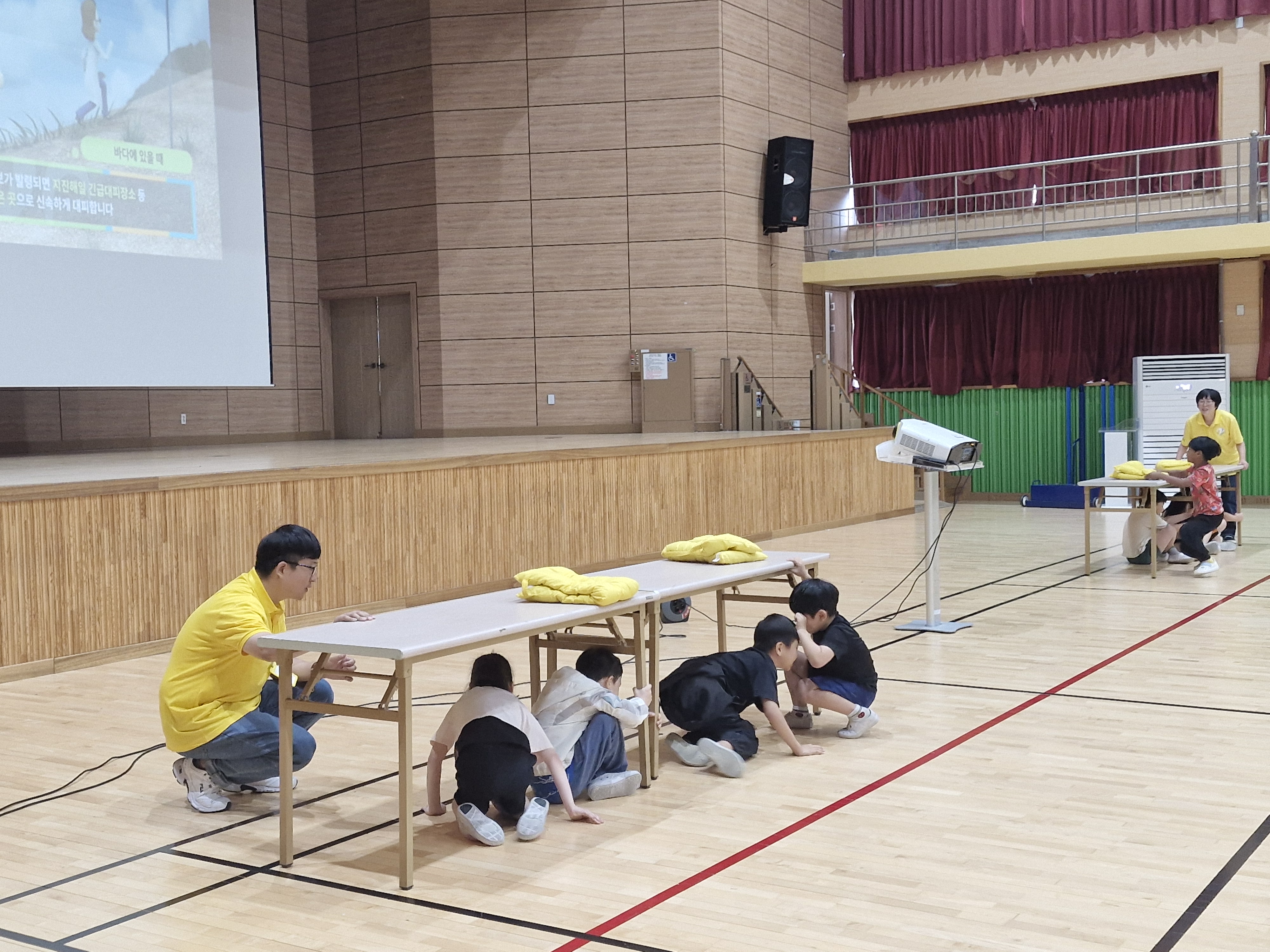 □ 특히 3학년 학생들은 ‘지진 차량 체험’을 통해 실제 지진 상황을 가상으로 체험해 보는 활동에 참여하였다. 지진 발생 시의 진동을 직접 느끼며 몸을 보호하는 올바른 자세를 실습해보는 등 이론과 실습을 병행한 체험은 학생들에게 큰 호응을 얻었다.