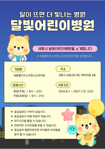 세종시, 웰키즈의원 달빛어린이병원 재지정
