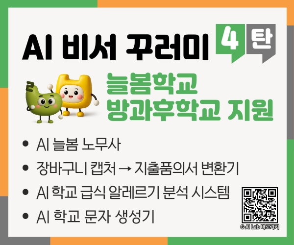 이번 4탄은 교원들의 실무 부담이 큰 방과후 운영 업무 전반을 체계적으로 지원하는 웹 기반 도구로 현장의 요청으로 개발이 시작됐으며 실사용자인 늘봄지원실장이 기획과 테스트에 직접 참여해 완성도를 높였다.