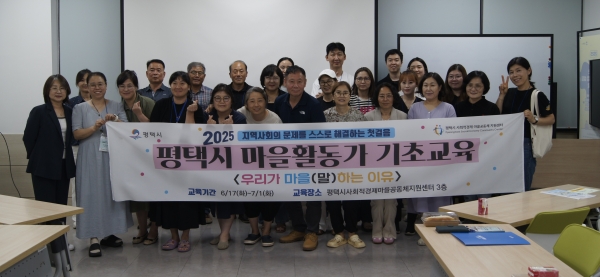 [금요저널] 평택시는 평택 사회적경제·마을공동체지원센터가 주관한 ‘2025 평택시 마을공동체’ 마을활동가 기초교육이 지난 1일 성공적으로 마무리되고 25명이 수료했다고 밝혔다.