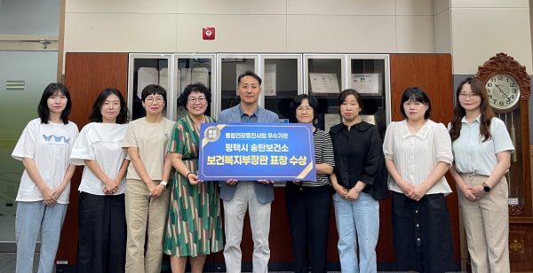 송탄보건소는 지역 특성과 주민의 요구를 반영해 생활터 및 생애주기별로 신체활동, 금연, 심뇌혈관예방관리, 여성과 어린이 건강특화사업 프로그램 등 지역사회 통합건강증진사업을 적극 추진해 지역 주민의 건강증진에 이바지한 공적을 높이 평가받아 우수기관으로 선정됐다.