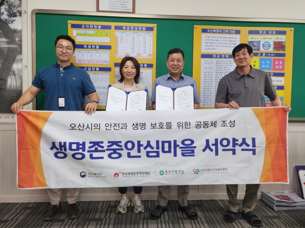 [금요저널] 오산시정신건강복지센터 부설 자살예방센터는 7월 4일 오산중학교와 생명존중 문화조성을 위한 생명존중안심마을 사업 서약을 진행했다.