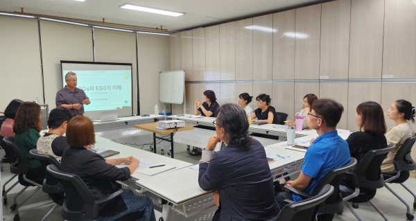 강의는 ESG코리아 신윤관 사무총장이 진행했으며 △노인복지 현장에서의 SDGs 및 ESG 개념 이해 △지속가능한 복지 실천 모델 발굴 역량 강화 △기관 운영 및 서비스 기획 시 ESG 가치 통합 방안 등을 주제로 구성됐다.