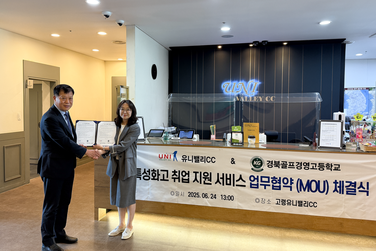 □ 레저‧스포츠 산업 분야의 실무형 인재를 양성하고 있는 경북골프경영고등학교(교장 정철수)는 지난 7월 4일(금) 고령군 고령읍에 위치한 고령유니밸리CC와 지역 인재 육성과 골프 산업 전문 인력 양성을 위한 업무협약(MOU)을 체결했다고 밝혔다.
