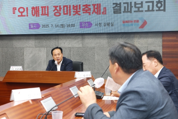 [금요저널] 오산시가 지난 14일 시청 상황실에서 제1회 오해피 장미빛축제 평가보고회를 열고 축제 성과와 개선점 분석을 바탕으로 발전 방향을 논의하는 자리를 마련했다.
