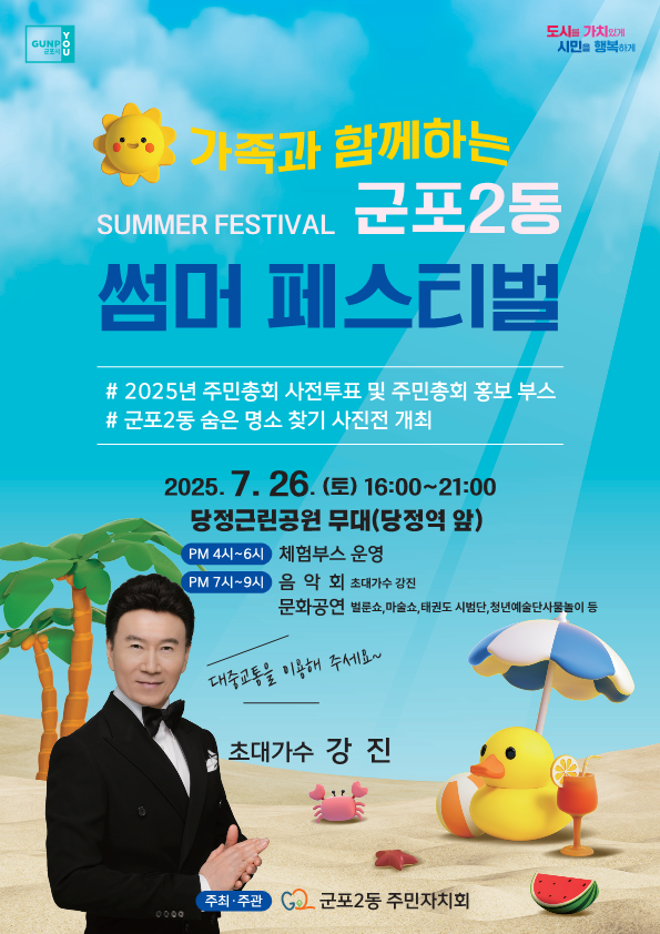 [금요저널] 군포2동 주민자치회는 오는 7월 26일 군포 당정근린공원에서 가족과 함께하는 썸머 페스티벌을 개최한다.