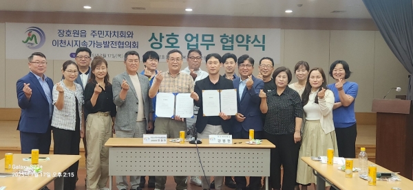 [금요저널] 장호원읍 주민자치회는 지난 7월 17일 이천시 지속가능한발전협의와 자원 재활용 재순환 촉진과 환경교육 강화를 위한 업무협약을 체결했다.