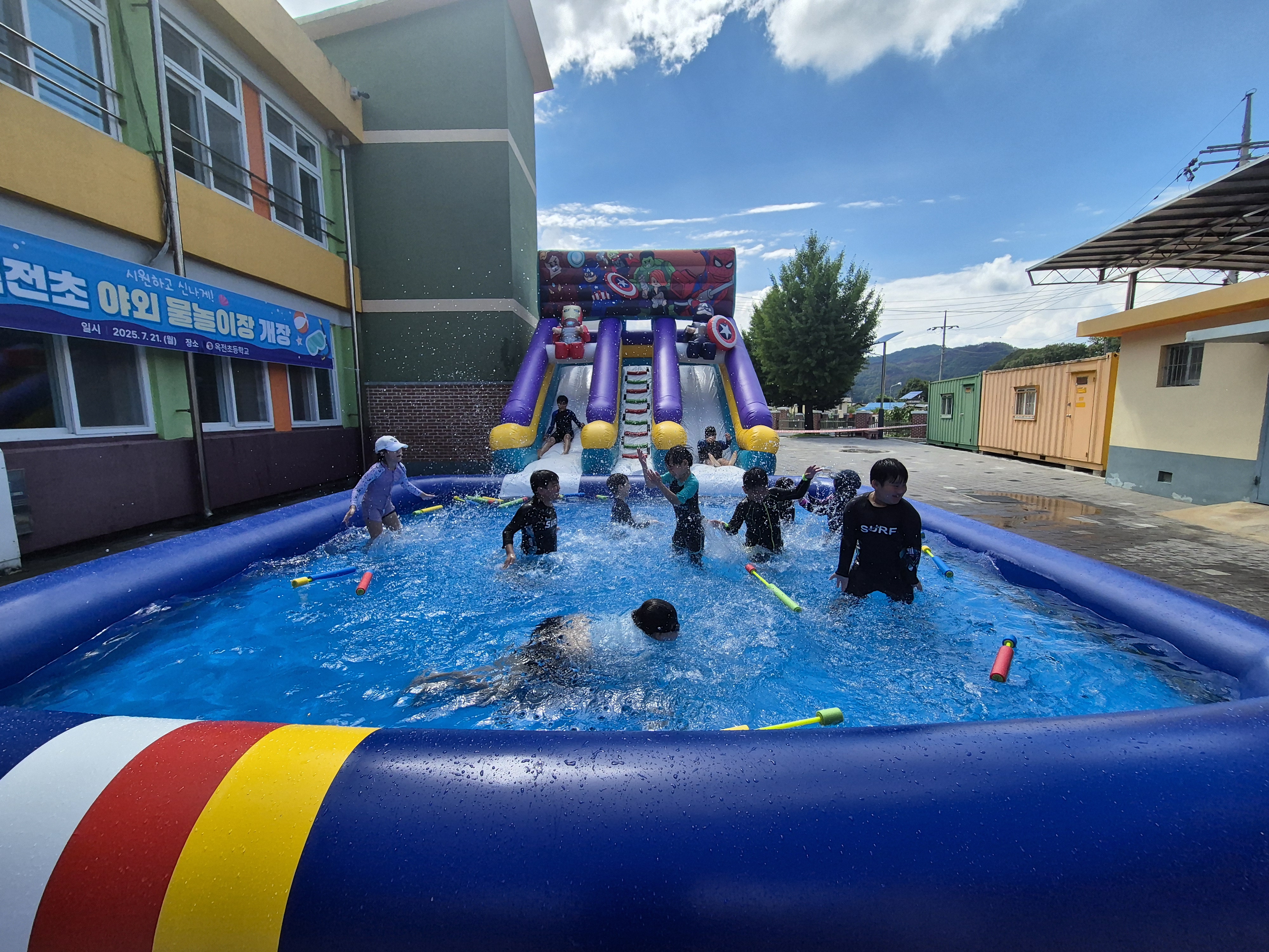 의성군 옥전초등학교(교장 이용창)는 지난 2025년 7월 21일 전교생이 참여한 가운데 학교 야외 물놀이장을 개장했다.