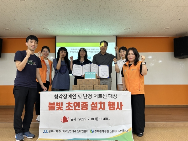 [금요저널] 군포시와 군포시지역사회보장협의체는 주택관리공단 산본매화주거행복지원센터와 협력해 난청장애인 가구에 불빛으로 방문을 알리는 '보이는 초인종' 설치를 지원하고 있다.
