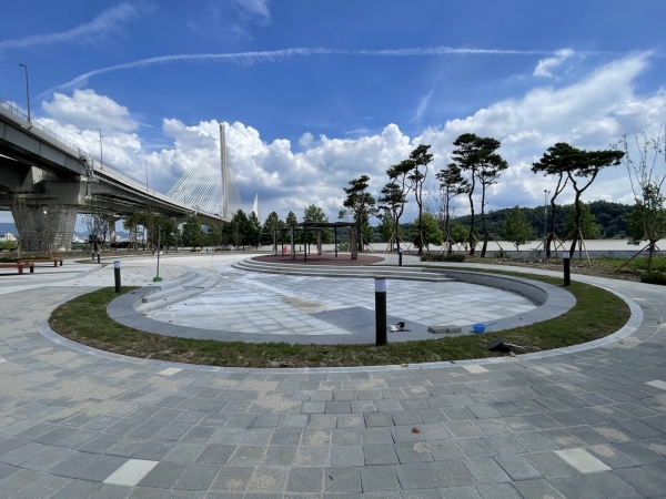 다양한 편의시설 및 식생 조경 조성 : 이곳에 2,100㎡의 광장이 새로이 들어서고 휴게시설로 파고라 2개소, 등벤치 18개소, 평상 2개소, 목재 데크를 설치 완료했다.