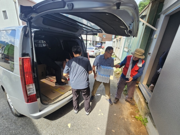 이는 수해로 인한 일시적인 단수 및 식수 부족 상황에서 지역 주민들과 자원봉사자들이 안전하고 위생적인 식수를 마실 수 있도록 돕기 위한 조치다.