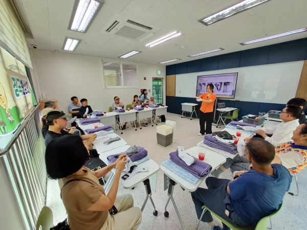 특히 2회 차 교육은 ‘의류 정리 수납’을 주제로 부족한 생활공간에서도 계절과 종류에 맞춰 의류를 정리할 수 있도록 배워보는 시간을 가졌다.