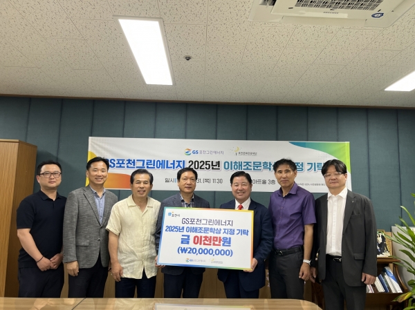 이중효 포천문화관광재단 대표이사는 “GS포천그린에너지의 지속적인 관심과 후원에 깊이 감사드린다”며 “이번 기부금은 2025년 이해조문학상 공모전의 상금, 시상식, 작품집 발간, 홍보 등 전반적인 운영에 활용해 내실 있는 문학상으로 발전시키겠다”고 밝혔다.