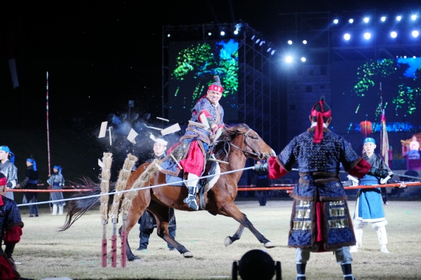 야조를 주제로 기마 무예·군무·병법 시연 등 전통 콘텐츠에 워터스크린·특수효과·미디어 맵핑·불꽃 연출 등 첨단 무대 기술을 결합한 공연을 볼 수 있다.