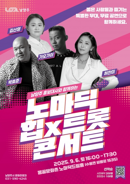 [금요저널] 남양주시는 오는 9월 6일 오후 4시 수동면 몽골문화촌 노마딕드림홀에서 ‘노마딕 힙X트롯 콘서트’를 연다.