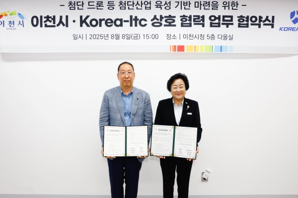 협약에 따라, KOREA-ITC가 보유한 정보보안체계 및 협력 기업 인프라를 활용해 첨단기술을 보유한 드론 기업들이 이천시에 유치될 수 있도록 적극 지원해 지역 전략 산업으로 육성할 예정이다.