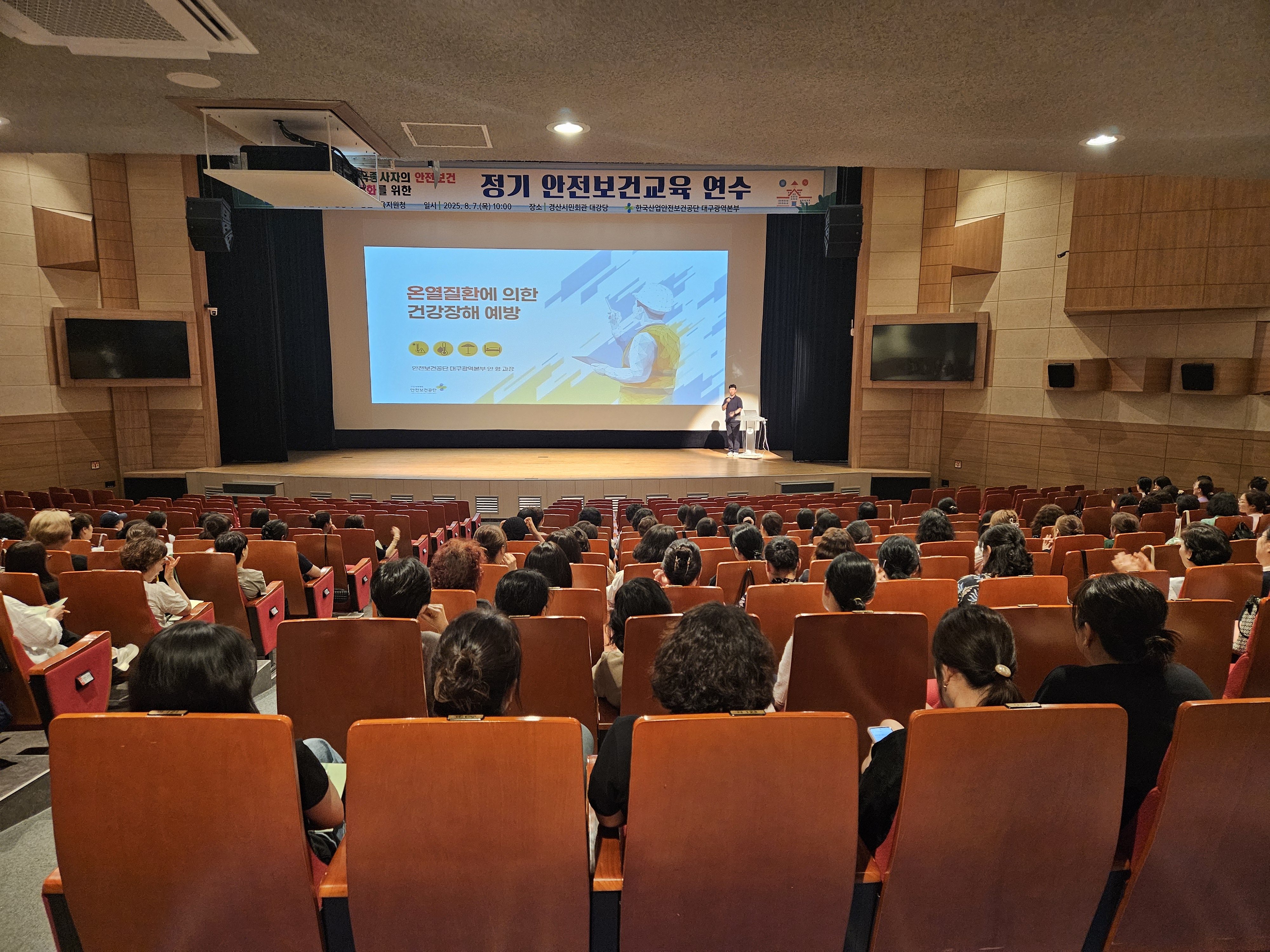 □ 「산업안전보건법」제29조에 따라 실시한 이번 교육은 조리 업무 중 발생할 수 있는 산업재해에 대한 대응력과 안전보건에 대한 다양한 지식 및 기능습득을 위해 대한산업안전협회, 경산시정신건강복지센터, 안전보건공단의 전문강사를 초빙하여 △안전보다 소중한 가치는 없다 △자살예방 인식개선 △온열질환에 의한 건강장해 순으로 진행되었다.