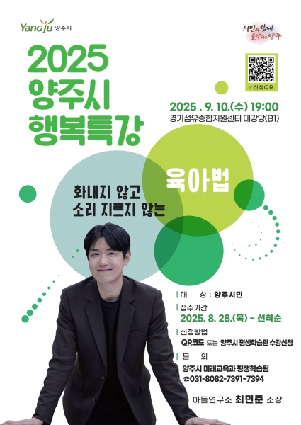 [금요저널] 경기 양주시가 오는 9월 10일 오후 7시 경기섬유종합지원센터 대강당에서 아들연구소 최민준 소장을 초청해 ‘2025 양주시 행복특강’을 개최한다.