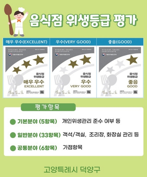 덕양구는 위생등급의 신뢰도를 높이고 지정 업소의 위생관리 수준이 지속적으로 유지되도록 사후관리를 강화할 방침이다.