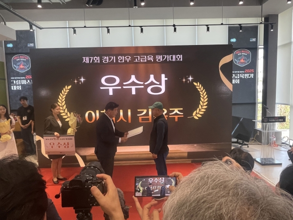 [금요저널] 이천시는 김용주 농가가 지난 8월 5일부터 7일까지 도드람 안성축산물공판장에서 열린 ‘2025년 제7회 경기 한우 고급육 평가대회’에서 우수상을 수상하는 영광을 안았다고 전했다.