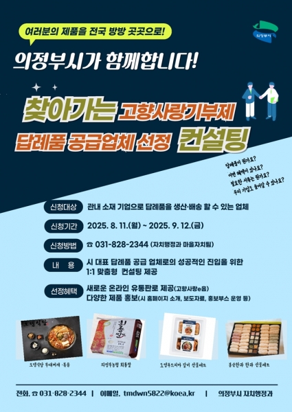 [금요저널] 의정부시는 지난해 큰 호응을 얻었던 ‘찾아가는 고향사랑기부제 답례품 공급업체 선정 컨설팅’을 올해도 이어간다.