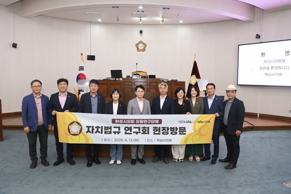 [금요저널] 화성특례시의회 의원연구단체인 ‘자치법규 연구회’ 가 12일 자치법규의 체계적 분석과 정비 방안 마련을 위한 연구의 일환으로 하남시의회를 방문했다.