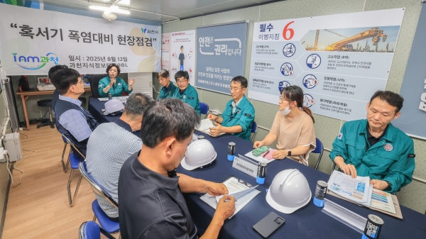 특히 신계용 과천시장은 냉방 조끼, 냉토시, 냉수 등 보호장비의 실제 지급 여부를 직접 확인하고 근로자들에게 ‘폭염 안전 5대 기본 수칙’과 폭염 시 행동 요령을 안내하며 안전 수칙 준수를 당부했다.