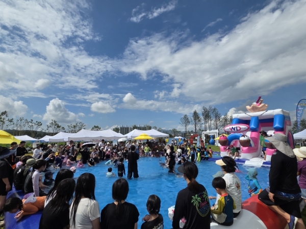 워터바운스 3종, 수박 서리, 물풍선 터뜨리기 등 시원한 물놀이 프로그램은 아이들에게 큰 인기를 끌었고 페이스페인팅·가족 포토존·심폐소생술 체험·탄소중립 커피박 체험 등 체험 부스는 가족 단위 참여로 북적였다.
