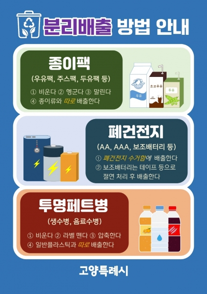 [금요저널] 고양특례시는 시민들에게 3대 재활용품을 반드시 분리 배출해 줄 것을 당부했다.