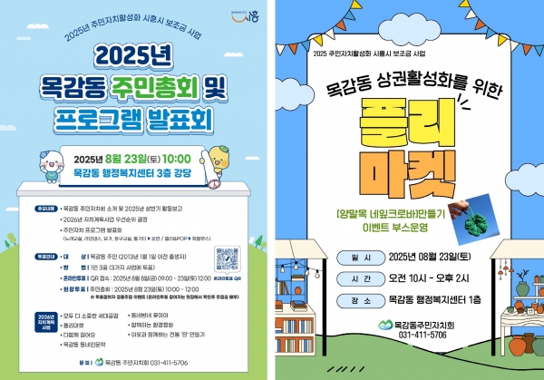 [금요저널] 시흥시 목감동 주민자치회는 오는 8월 23일 오전 10시부터 목감동 행정복지센터 3층 강당에서 ‘2025년 목감동 주민총회’를 연다.