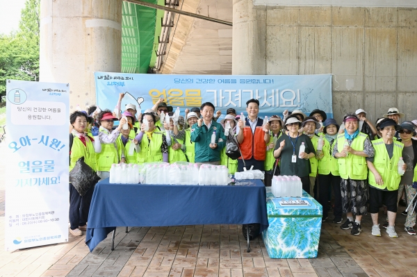 [금요저널] 의정부시는 8월 20일 중랑천 일대에서 ‘오아-시원’ 얼음물 나눔 행사를 열고 폭염에 취약한 노인일자리 참여자 및 시민들에게 얼음물을 전달했다.