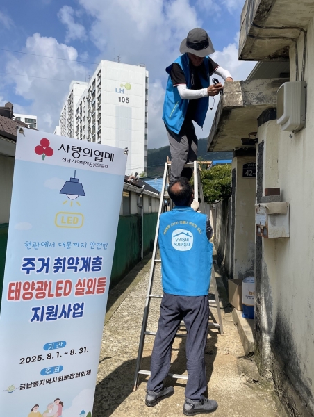 [금요저널] 전라남도 나주시 금남동지역사회보장협의체는 지역특화사업 일환으로 지난 22일부터 후미진 골목과 어두운 실외 환경에서 거주하는 노인, 장애인 가구 등 30가구에 태양광 LED 실외등 설치 지원사업을 추진한다고 밝혔다.