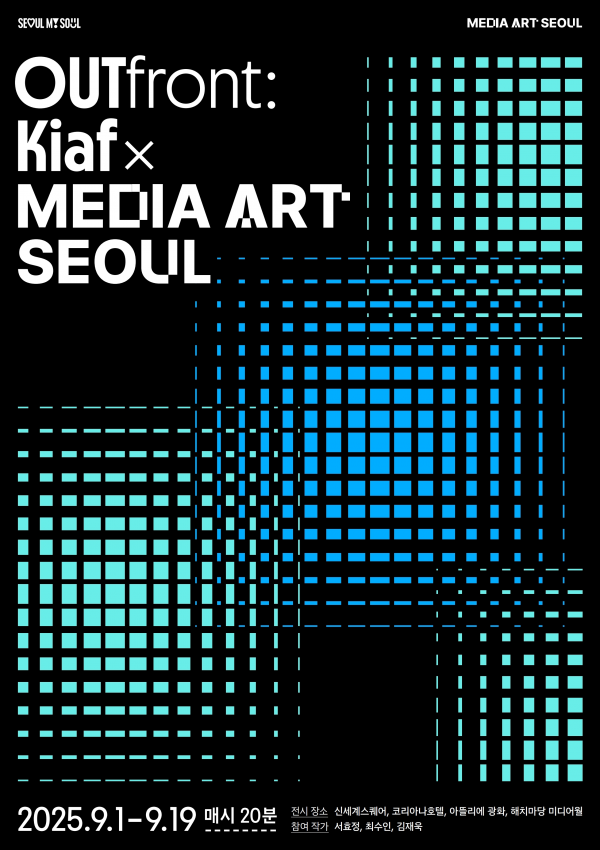특별 전시 제목은 ‘OUTfront: Kiaf x MediaArt SEOUL’로 키아프 추천 작가 서효정의 ‘Tidal Tessellation’과 서울시 추천 작가 최수인의 ‘그르릉, 와르르, 우르릉’ 김재욱의 ‘신한국생도’, 총 3점의 작품이 매시 20분에 각 30초 분량으로 송출된다.