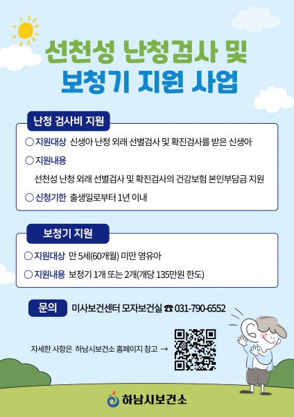 하남시는 이에 발맞춰 △건강보험이 적용된 신생아 난청 외래 선별검사비의 본인부담금 △재검 판정을 받은 아동의 확진검사비 본인부담금을 지원한다.