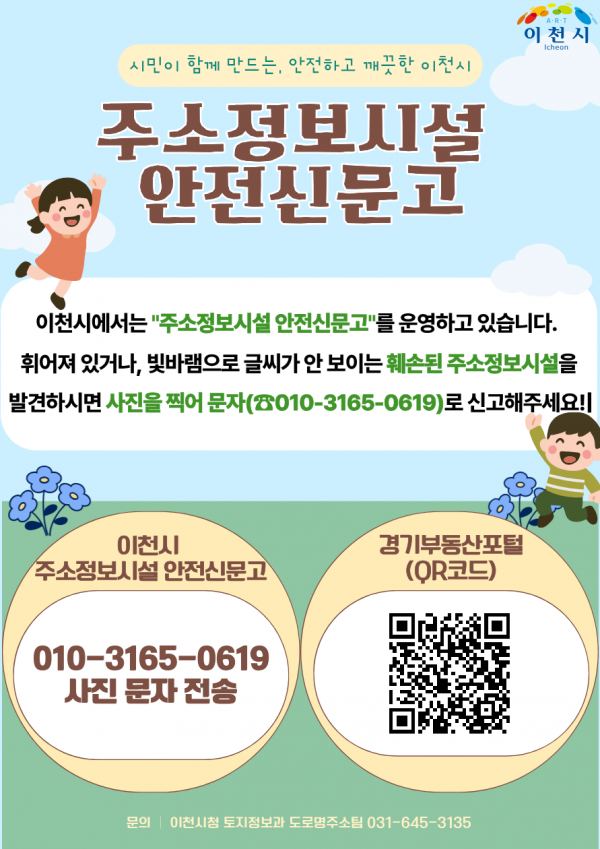 [금요저널] 이천시는 경기도와 연계한 '주소정보시설 안전신문고'를 상시 운영하며 시민들의 생활 안전과 편의를 높여가고 있다.