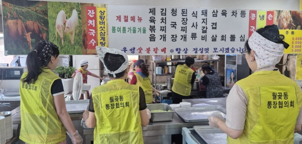 [금요저널] 시흥시 월곶동은 지난 8월 26일 월곶동 내 한 음식점에서 무더위를 식혀줄 ‘콩국수 무료 급식 나눔 행사’를 열었다.