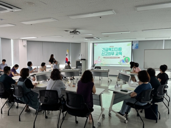교육은 긴급복지 신고와 관련된 법적 의무 및 복지사각지대 대상자 발견 시 신고 방법과 보호 절차 안내, 실제 우수사례가 담긴 동영상 자료 시청 등으로 진행됐다.