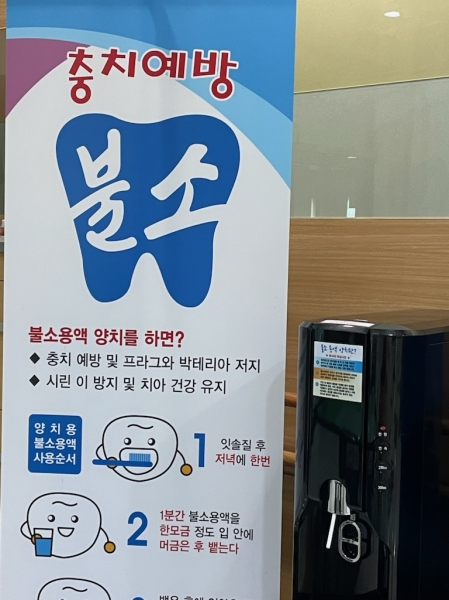 송탄보건소 내에 ‘불소양치 용액 분배기’를 설치해 시민 누구나 평일 근무 시간 내 방문하면 직접 용액을 담아갈 수 있다.