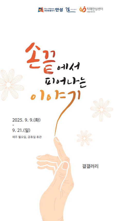 [금요저널] 안성시치매안심센터는 치매 극복의 날을 기념해 관내 치매 쉼터 어르신들의 작품 전시를 오는 9월 9일부터 9월 21일까지 안성천 작은 미술관 결 갤러리에서 ‘손끝에서 피어나는 이야기’라는 주제로 단체전을 개최한다.