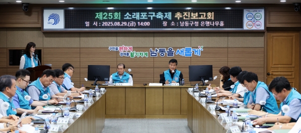 보고회에서는 축제를 안전하고 성공적으로 치르기 위해 위탁 기관인 남동문화재단의 경과보고와 주관 기획사의 세부 실행계획, 그리고 구청 각 부서 참여와 지원 계획이 논의됐다.