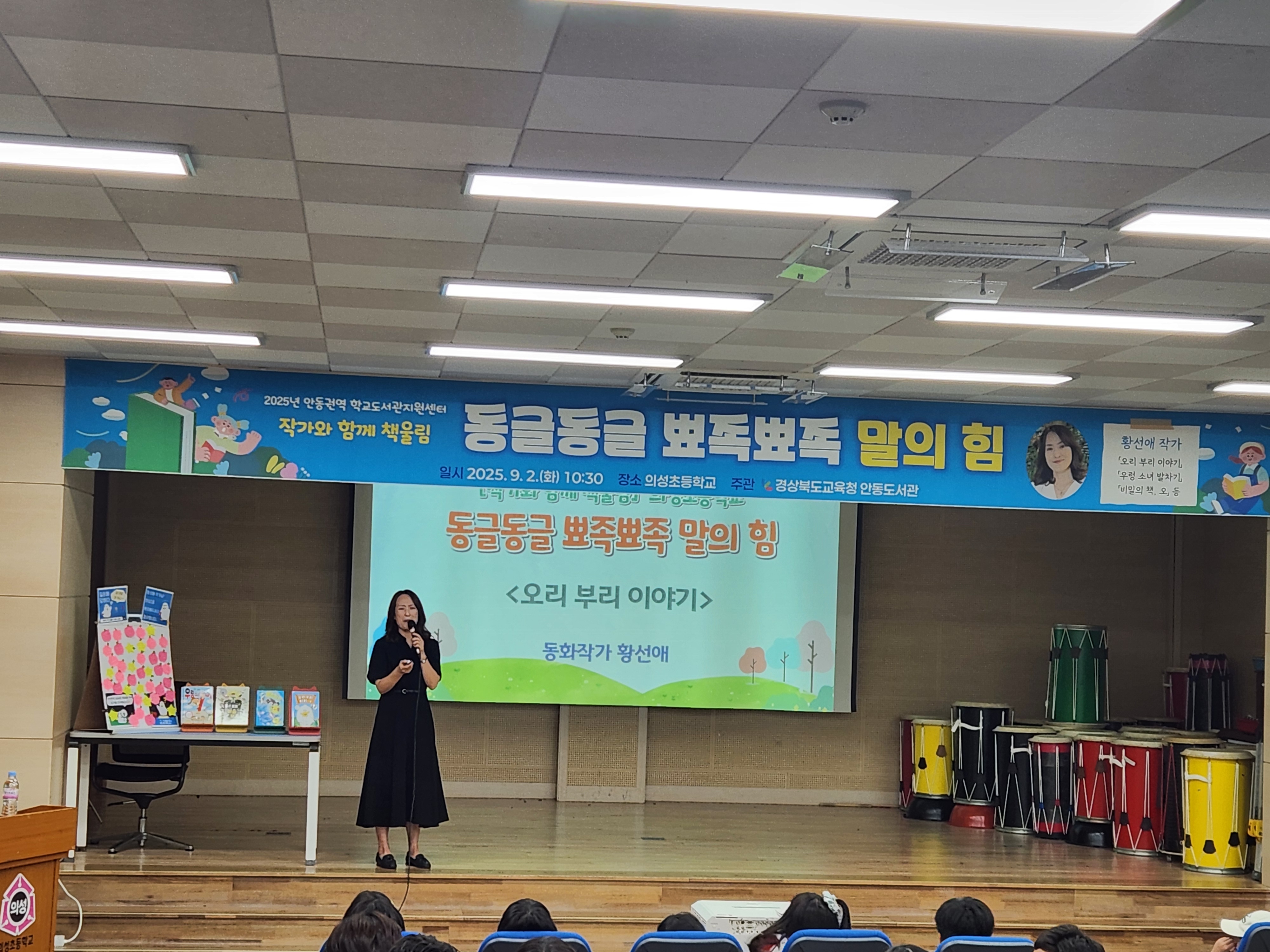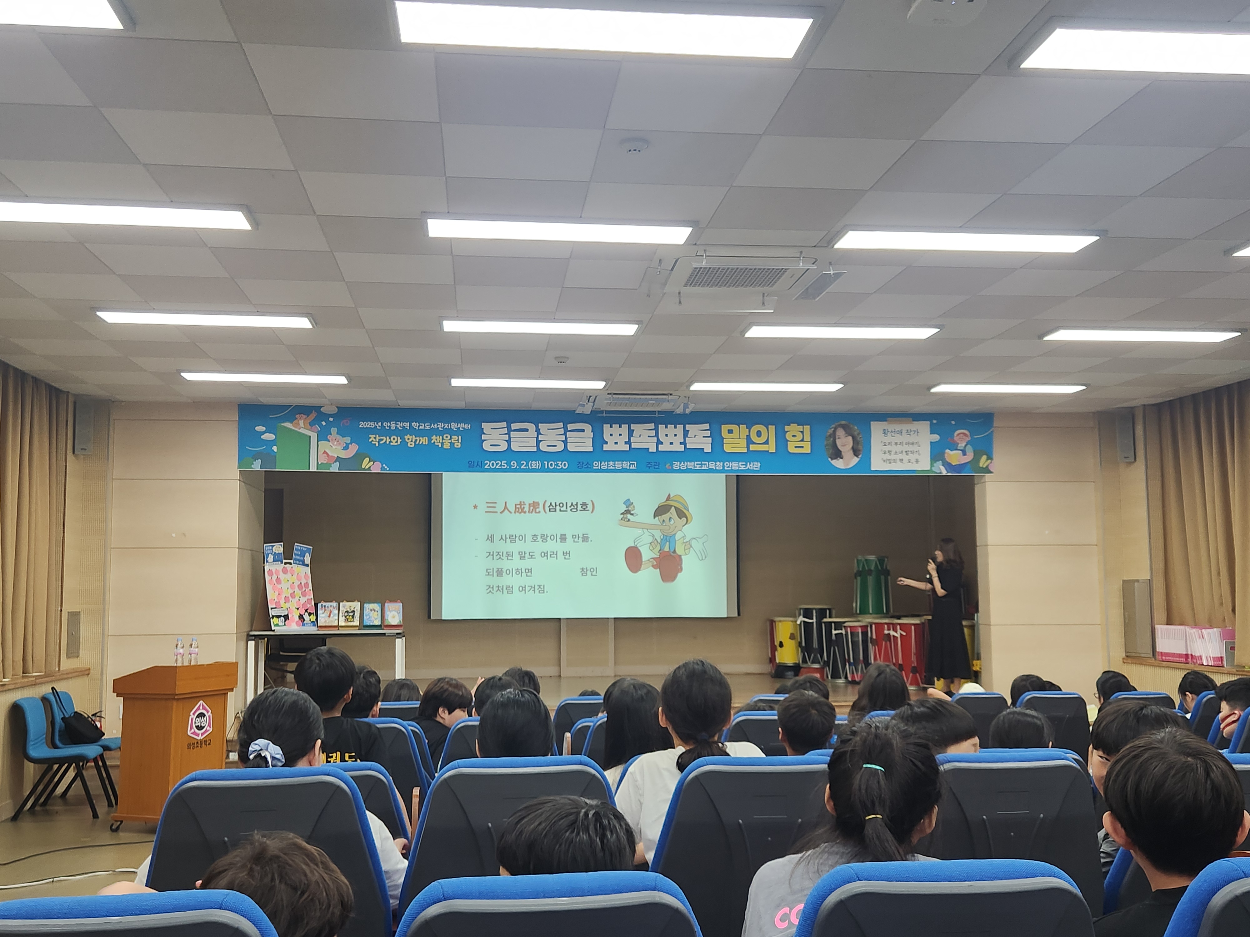 의성초등학교(교장 이경순)는 2025년 9월 2일(화), 3~4교시에 4학년 학생들을 대상으로 ‘동글동글 뾰족뾰족 말의 힘’을 주제로 『오리 부리 이야기』의 저자 황선애 작가와의 만남을 진행했다.