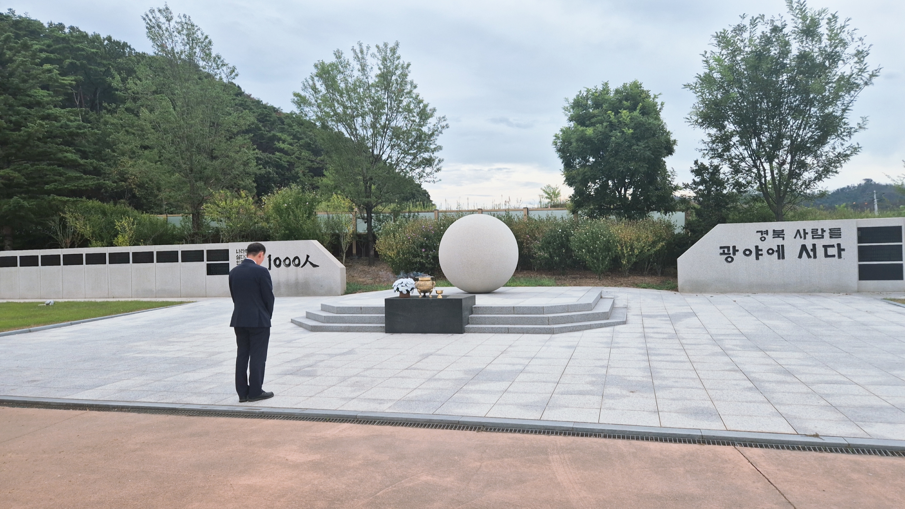 □ 홍 교육장은 호국보훈재단 내 경북독립운동기념관(이하 기념관)에서 호국 영령들께 헌화하며“현재 기념관이 위치한 자리는 모교인 (구)천전초등학교 부지이며, 스승의 은혜와 학우들의 우정이 넘쳤던 이곳은 유년시절 교육자의 길을 꿈꾸기 시작했던 인생의 마중물과 같은 공간이다.”라고 남다른 감회를 전했다.